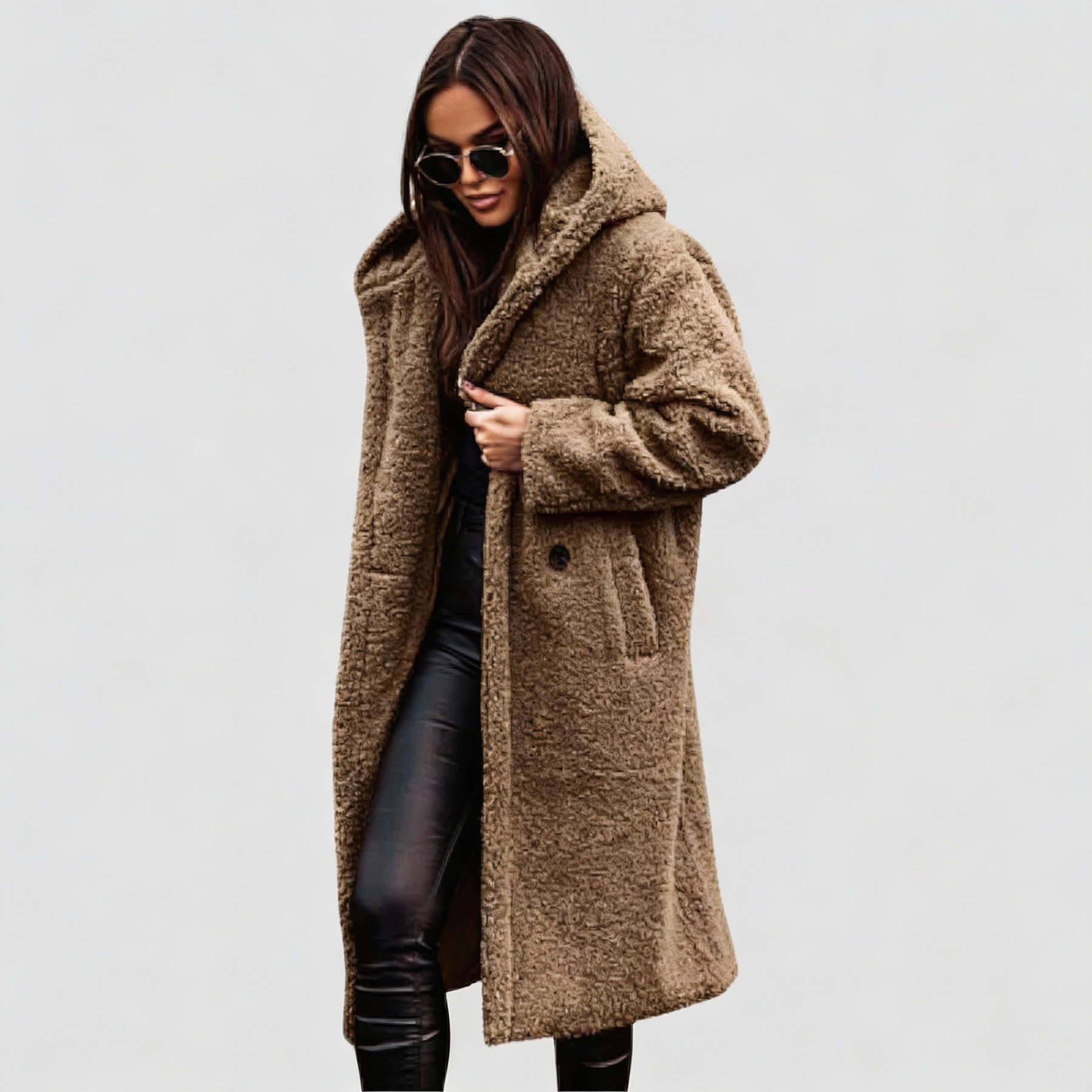Descubra un lujoso abrigo de lana con capucha que, gracias a su cuidada longitud hasta la rodilla, le ofrece una excelente protección y un estilo atemporal. Este abrigo combina funcionalidad y elegancia, por lo que es la elección perfecta para los días fríos de otoño e invierno, a la vez que crea una silueta chic para usted.